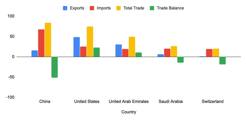 China is India’s biggest trading partner in the world and India also has the largest trade deficit with China (which means that India imports more than it exports to China). This deficit has doubled in less than a decade.