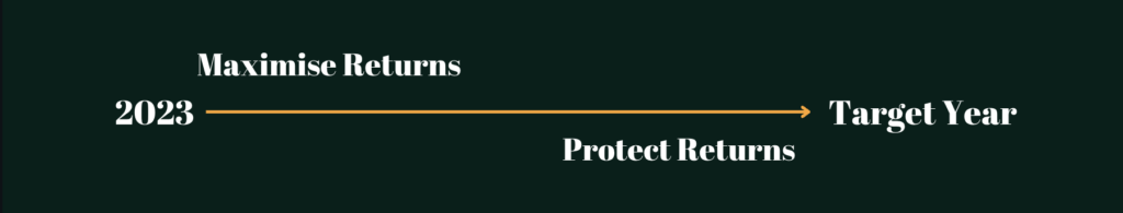 - As the target year approaches, there’s a systematic reduction in equity allocation to manage risk.