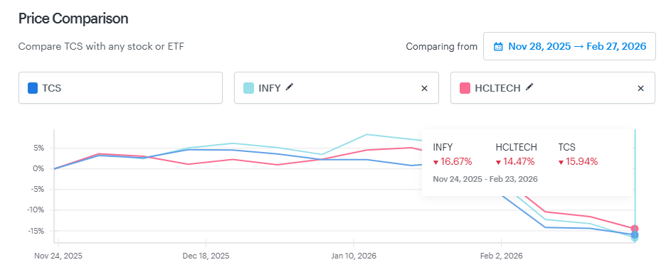 By January 27th, the Nifty IT index had fallen about 20% in the past month. Major IT stocks such as Infosys, TCS, and HCL Technologies dropped by 16% to 22% during this period.