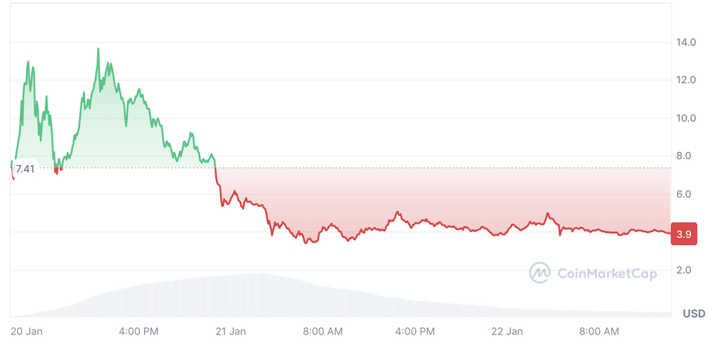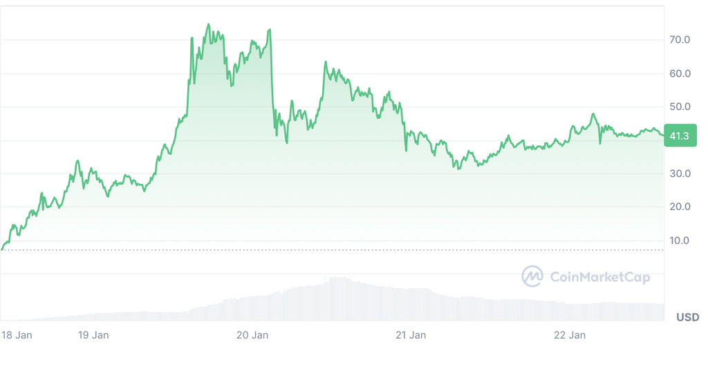 Within mere hours of its launch, the coin surged over 300%. The initial price of $10 per coin skyrocketed to a staggering $75.35 in just one day, briefly giving it a market capitalisation of $15 billion. According to cryptocurrency price tracker CoinGecko, the token was last trading at $42.63.
