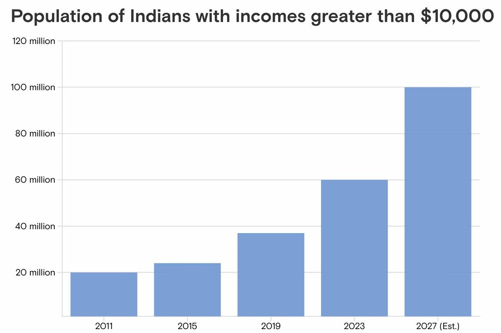 Similar to the surge in demand witnessed in China during the early 1980s, India is currently experiencing a notable uptick in the desire for luxury goods. A Goldman Sachs 2024 report on ‘India’s affluent population’ highlights the rapid growth in the wealth of affluent Indians and that this will increase from around 60 million in 2023 to 100 million people by 2027, or even more.