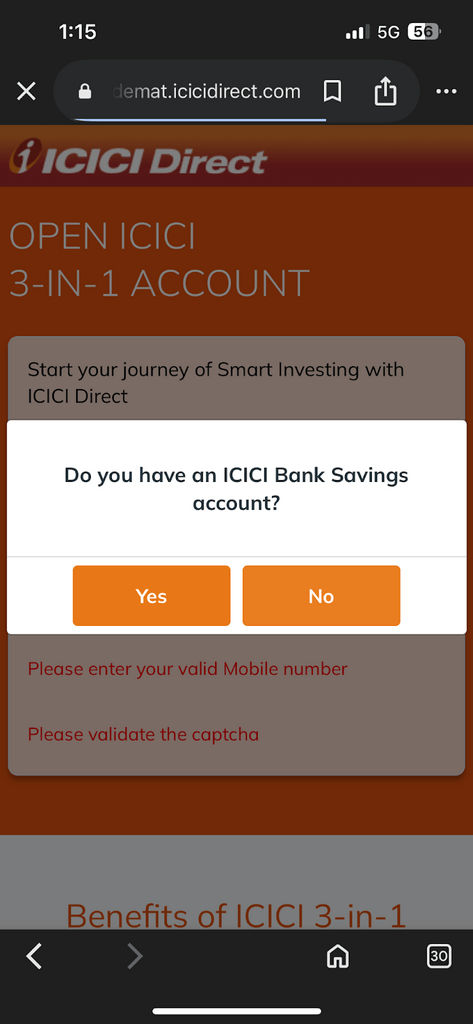 - Visit the ICICI Direct account opening page.