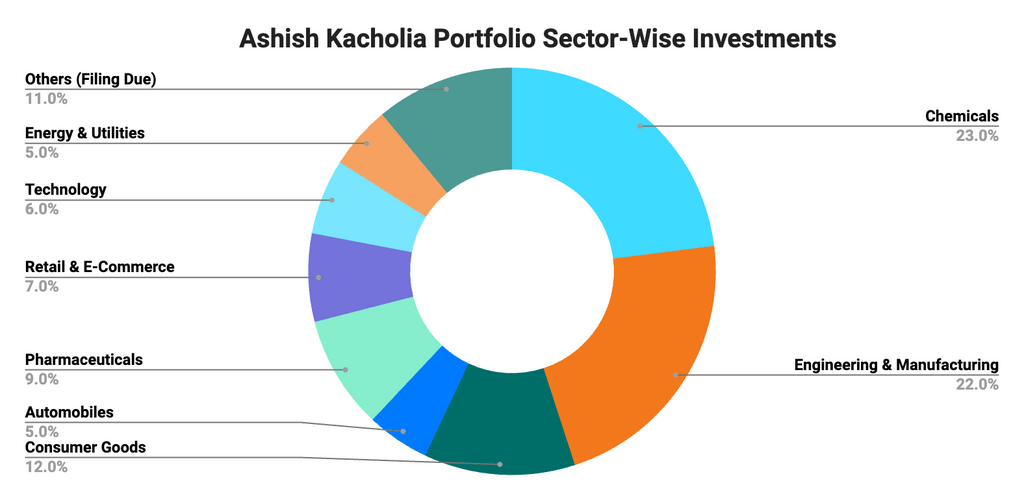 Ashish Kacholia try to find opportunities in the small and mid-cap space. His portfolio shows that he has a preference for a diversified portfolio mix across sectors. He often takes early positions in companies with strong fundamentals, niche market presence, and long-term expansion potential.