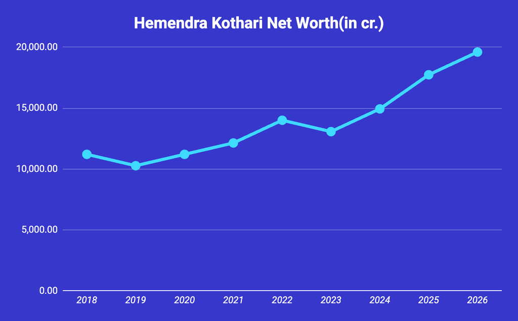 As of 15th April 2026, Hemendra Kothari’s net worth is estimated at ₹19,607.36 cr. This growth reflects the strong performance of his portfolio and the increasing value of his investments over the years.