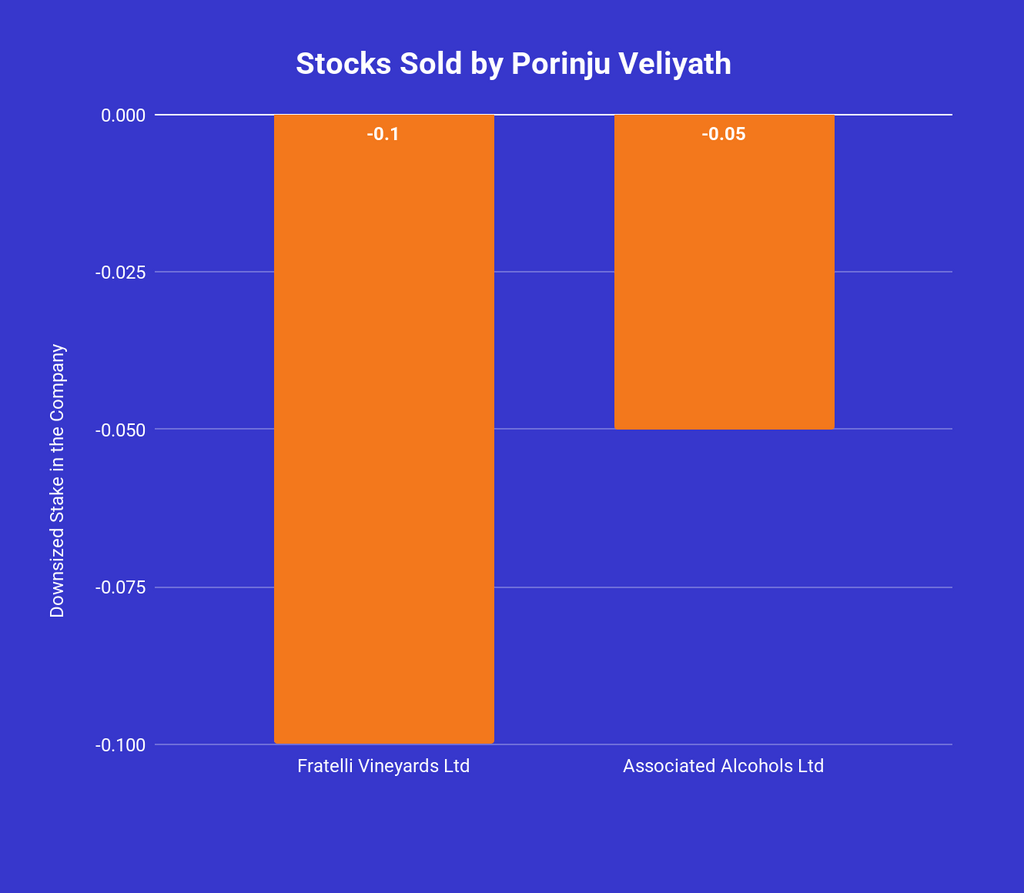 Porinju Veliyath also reduced his stake in a few holdings during the latest period. His stake in Fratelli Vineyards Ltd declined by 0.10%, indicating a partial trim in the beverages segment. He also cut his holding in Associated Alcohols Ltd by 0.05%, reflecting a small reduction in exposure to the alcohol and consumer products space.
