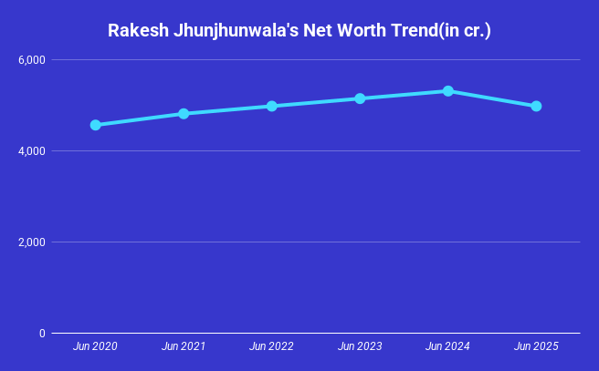 Rakesh Jhunjhunwala’s net worth has been growing steadily over the years due to his clever investment and market sense.